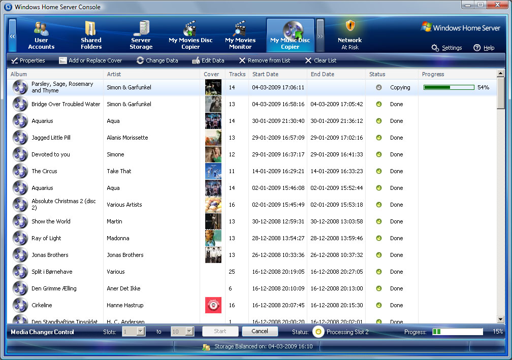 Once you have inserted discs into the changer, you are ready to let My Movies for Windows Home Server start the copy process of your discs.